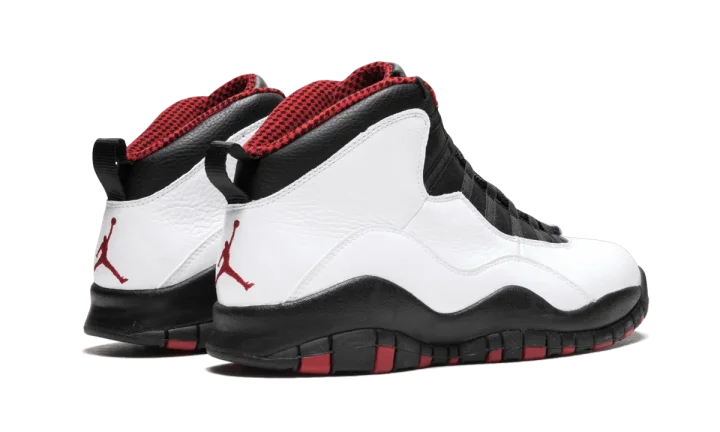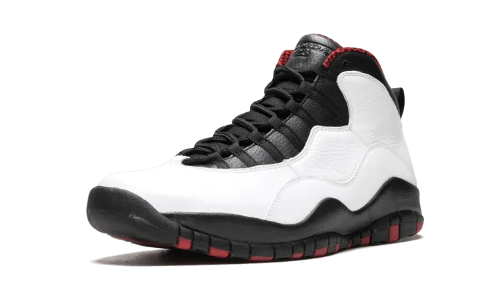 This is the 2012 release of the Air Jordan 10 in its original "Chicago" colorway. The shoe is presented in the same form you would find at retail in 1995, without the "45" embroidered on each ankle like Michael Jordan's PE pairs.