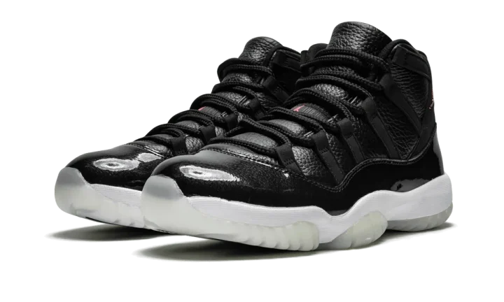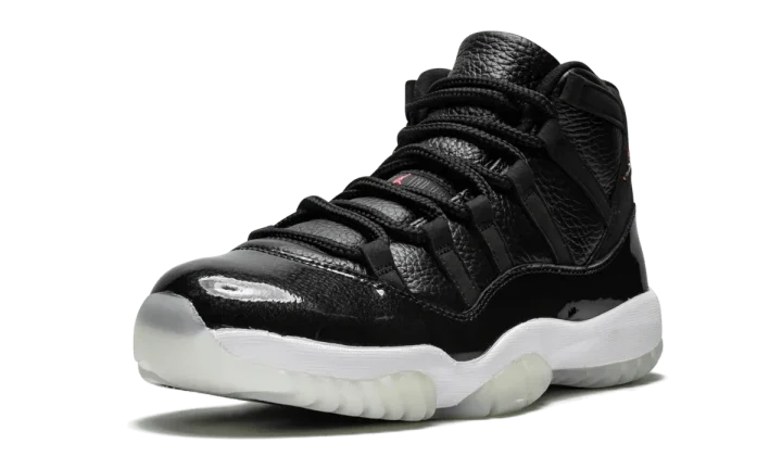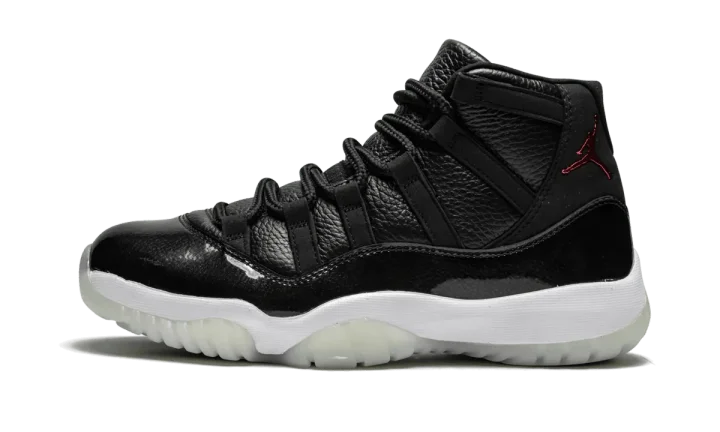 An all-new colorway of the Air Jordan 11 for 2015, the "72-10" edition pays tribute to Michael Jordan's historic 72-win season with the Chicago Bulls in 1995-96. The new take on a Bulls color scheme for the iconic silhouette features a luxurious black leather upper with with an icy outsole and metallic red accents. No Air Jordan 11 collection is complete without a pair.