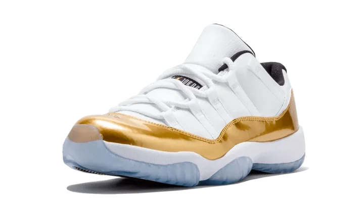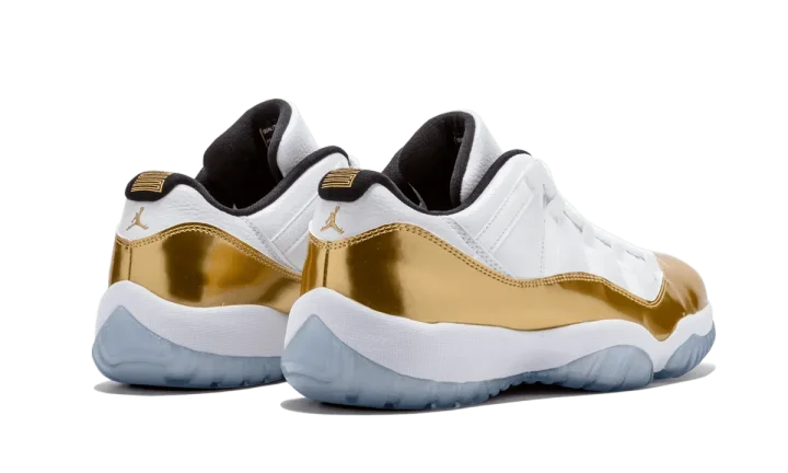 To celebrate the 2016 Summer Olympics in Rio Jordan Brand release of the Air Jordan 11 Retro Low "Closing Ceremony." The sneaker features a Gold medal-inspired mix of White leather, Metallic-Gold patent leather mudguard sitting on an icy out-sole.