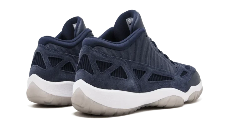 The Air Jordan 11 Low IE "Obsidian" is lifestyle colorway of the classic low-top version of Michael Jordan's eleventh signature shoe. This silhouette was worn by Jordan during stretches of the '96 NBA Playoffs and features several modifications in comparison to the high-top Jordan 11. A buttery soft Obsidian suede mudguard replaces the patent leather design found on the original Air Jordan 11. Tonal leather dots the collar and blush corduroy is visible along the mid-panel. Tonal leather covers the toe and tongue, which features an embroidered Jumpman logo. The look is finished off with a white midsole and translucent outsole.