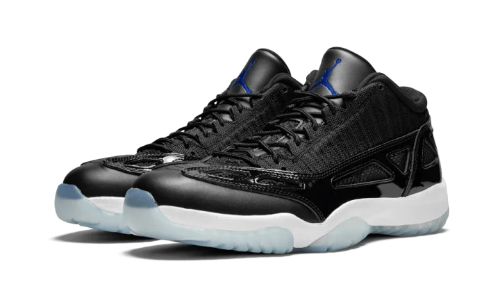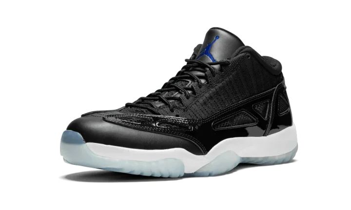 The Air Jordan 11 Low IE "Space Jam" is the classic low-top in a colorway inspired by the famous "Space Jam" colorway of the standard Air Jordan 11. Elegant styling consistent with the original high-top in the black colorway that was first seen in the film "Space Jam" on Michael Jordan's feet is abundant throughout. Shiny black patent leather along the mudguard replaces the Jordan 11 Low IE's original elephant-textured mudguard, while the upper is constructed in ballistic mesh, which also relates to the original high-top's construction. A blue Jumpman on the tongue, white midsole, and icy blue outsole complete the timeless look referencing one of the greatest Air Jordans of all time. The Air Jordan 11 Low IE "Space Jam" was released on July 13th, 2019.