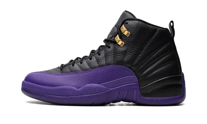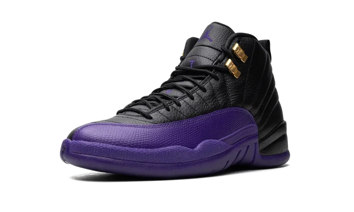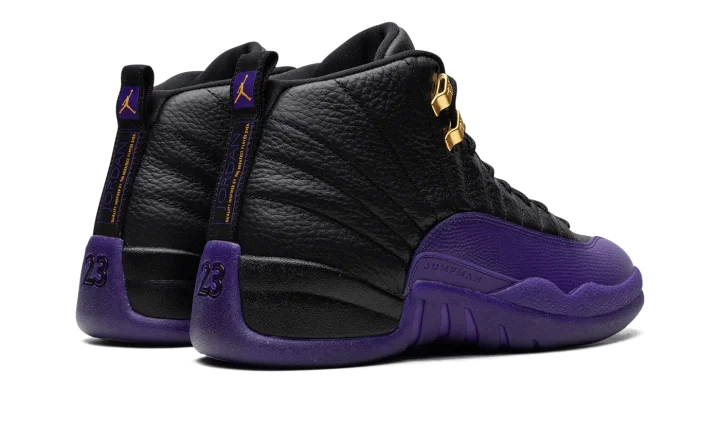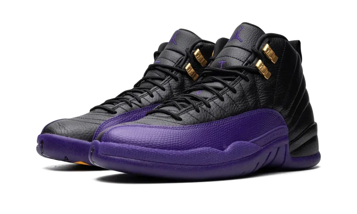 The Air Jordan 12 "Field Purple" is a two-tone colorway of the retro basketball shoe loosely inspired by the Los Angeles Lakers. While not associated with the team, the "Field Purple" Jordan 12 nonetheless shows love to the Lakers with its purple accenting. The look is also likely inspired by the Player Exclusive Air Jordan 12 colorways that were worn by Gary Payton with the Lakers in the 2003-04 NBA season. The shoe has a black tumbled leather construction with a Field Purple mudguard. More purple accenting appears on the Jumpman and "Two 3" branding on the black leather tongue. Release date: August 19, 2023