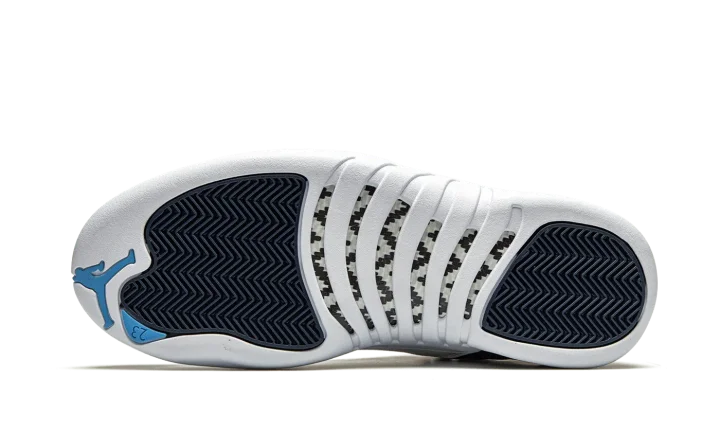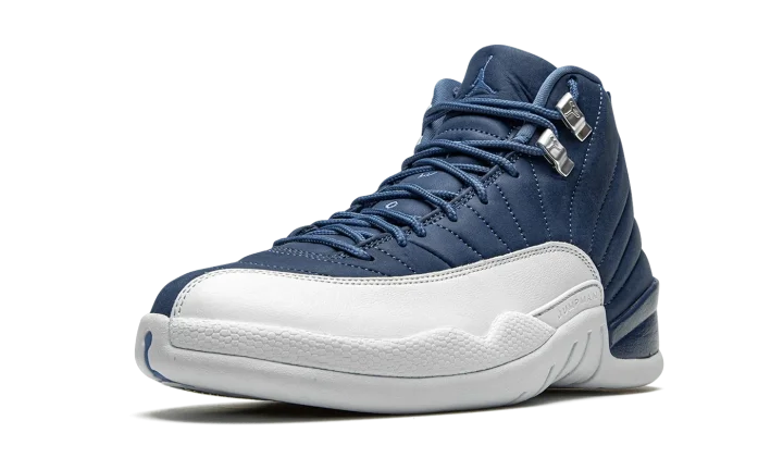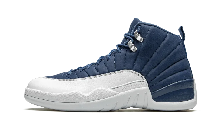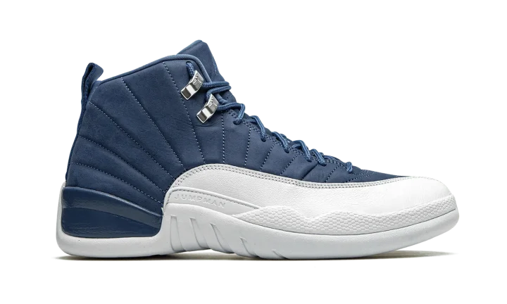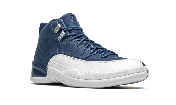The Air Jordan 12 "Indigo" is yet another desirable colorway of Michael Jordan's twelfth signature shoe. This late-Summer 2020 release displays a similar color blocking to the Jordan 12 "Obsidian" from 2012, though the upper paneling deviates in shade from dark navy blue to an indigo hue. Smooth white leather dots the mudguard and tonal embossed Jumpman branding appears above the midsole. Silver eyelets with Jumpman detailing, University Blue laces, and tonal embroidered Jumpman branding on the Indigo tongue add further styling to the classic silhouette. A white rubber midsole and outsole complete the look. Release date: August 22, 2020.