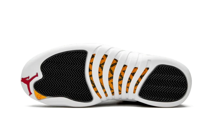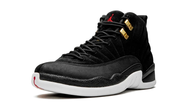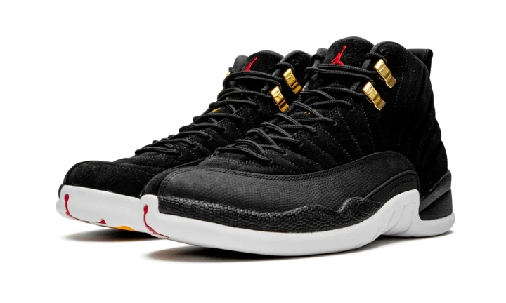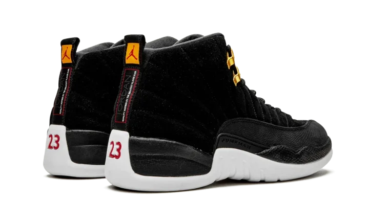 The Air Jordan 12 "Reverse Taxi" takes the classic "Taxi" colorway of the same shoe and flips it for a brand new look. Originally releasing in 1997, the Air Jordan 12 is one of the most recognizable Air Jordan models thanks to its continued run in the spotlight in present day sneaker culture. The "Reverse Taxi" design sports a black suede upper with luxurious gold accents on the eyelets, while the black nubuck mudguard features the original pebbled texture. Tonal Jumpman branding can be found on the mid-panel and the traditional "Two 3" branding on the tongue is done up in yellow embroidered lettering. A white rubber outsole features red Jumpman branding underneath the forefoot. The Air Jordan 12 "Reverse Taxi" was released on October 31, 2019.