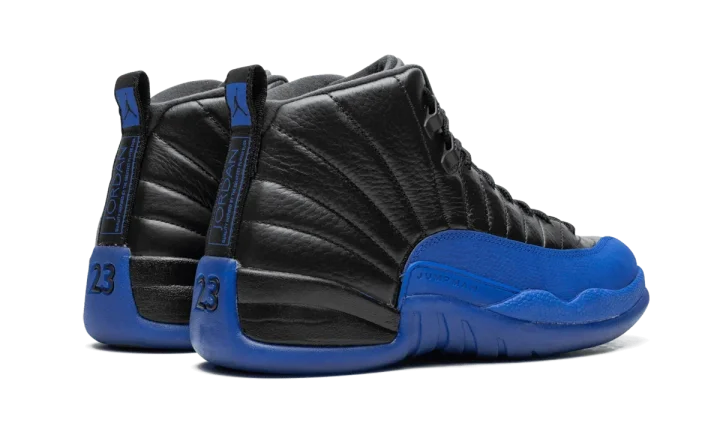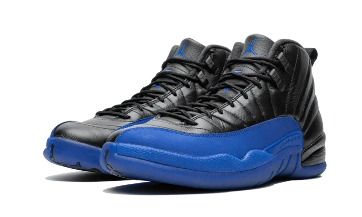 The Air Jordan 12 "Game Royal" is an updated look for the design that Michael Jordan made famous during the 1997 NBA Finals against the Utah Jazz. During Game 5 of the Finals, Jordan, then playing with a bad stomach virus, poured in 38 points enroute to a Chicago Bulls victory. Dubbed the "Flu Game" 12, the sneaker gained mystique for being the colorway Jordan wore during one of his most legendary performances ever. In 2019 Jordan Brand released this "Game Royal" Air Jordan 12, featuring identical color blocking to the "Flu Game" colorway, but with royal blue accents instead of red. The construction includes buttery black leather and contrasting Game Royal nubuck panels with a pebbled texture that add a pop of color. Black rope laces sit on a black leather tongue that features blue accents for the "Two 3" text and Jumpman logo. Further Jordan branding comes on the heel tab and heel spine with a black "23" logo on the blue rubber midsole. Completing the look is a familiar Air Jordan 12 outsole consisting of a black traction pattern with blue overlays. The Air Jordan 12 "Game Royal" released on September 21, 2019.
