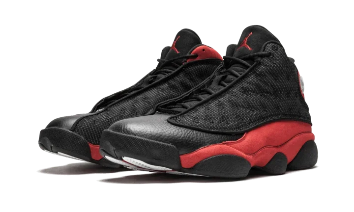 The Air Jordan 13 has been a focal point of retros released in 2017. It returns in the coveted "Bred" colorway. This release marks the return of 3M reflective material to the black ballistic nylon upper. The familiar black tumbled leather returns on the toe. The suede-wrapped heel and midsole feature the Chicago Bulls-inspired True Red hue. Red also accents the Jumpman branding on the tongue. And finally, the signature black cat inspired green holographic jewel occupies its usual place on the ankle. The latest Air Jordan 13 "Bred" retro proves that few things compare to a time-tested pair of kicks.