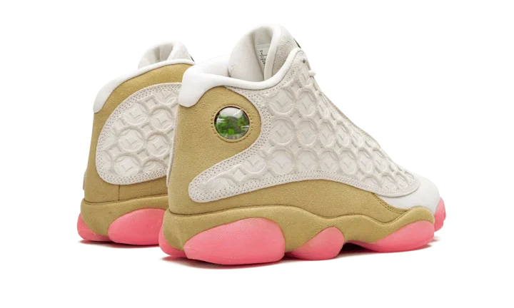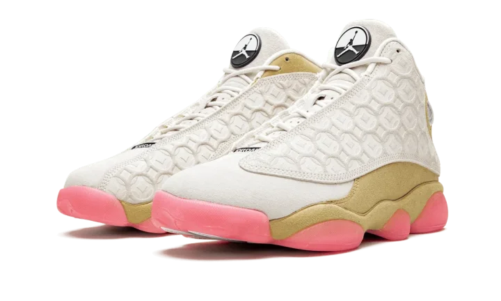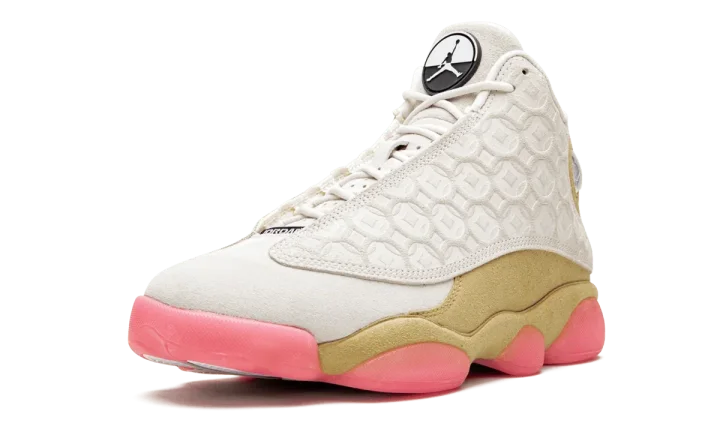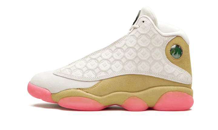 The Air Jordan 13 "Chinese New Year" celebrates the "Year of the Rat" for a special Winter 2020 release honoring the holiday. This unique colorway of Michael Jordan's thirteenth signature shoe features an ivory white suede upper with an embossed pattern that mimics traditional Chinese art and architecture. A camel-colored nubuck mudguard that extends to the heel contrasts the upper. A modified black and white Jumpman logo patch is added to the tongue for the final special detail. A pink-accented outsole symbolizes the tail of a rat. Release date: January 23, 2020.