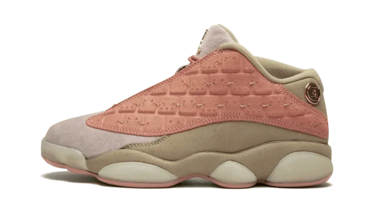 The CLOT x Air Jordan 13 Low "Terracotta Warrior" is a unique collaborative edition of the silhouette by CLOT co-founder and creative director Edison Chen. The design is inspired by Chen's youth, which was spent between Canada and Hong Kong, China. Utilizing his favorite Air Jordan model from high school, Chen crafted the low-top version of the Air Jordan 13 to mimic the look of the famous Terracotta Warriors statues, which he visited on a recent trip to Lintong county, Shaanxi province in China. To replicate the look of the ancient terracotta construction of the statues, the upper is constructed in a sepia-tone suede with a tile texture to reference the armor worn by the warrior figurines. More special details include golden metal CLOT logos on each heel, and the right shoe's tongue opposite a golden Jumpman logo on the left tongue, as well as translucent tan rubber utilized for the midsole and outsole. The impressive CLOT x Air Jordan 13 Low "Terra Cotta Warrior" released in limited quantities in December 2018.