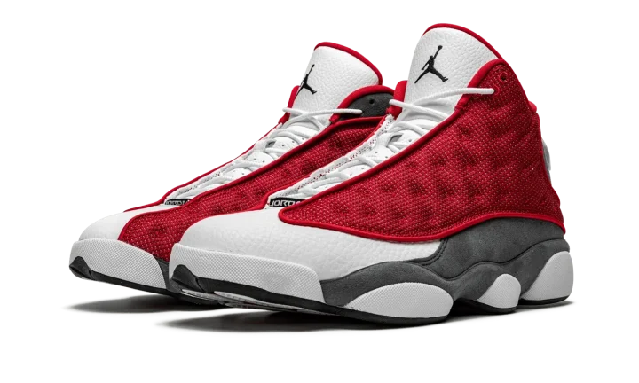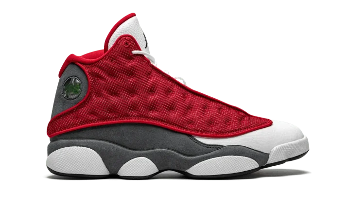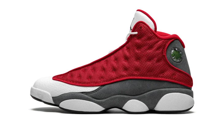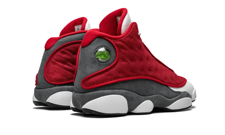 The Air Jordan 13 "Red Flint" is an updated, red-based version of the popular "Flint" colorway of Michael Jordan's thirteenth signature shoe. Alluding to the Jordan 13 "Flint," an original colorway of the retro basketball shoe that debuted in 1998, the "Red Flint" is arranged in an identical color block to that model, only substituting the blue textile upper found on the first "Flint" for a head-turning Gym Red hue. The rest of the shoe is identical to the original "Flint" with white tumbled leather on the toe and dotted leather on the tongue. A holographic emblem can be found on the collar and Flint Grey suede appears on the mudguard above the white midsole walls. A black Jumpman logo is embroidered on the tongue and "Jordan" text appears on the black nylon tag on the throat. Release date: May 1, 2021.