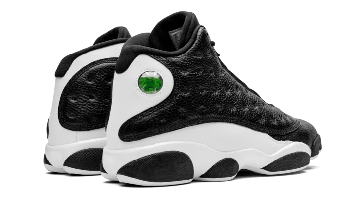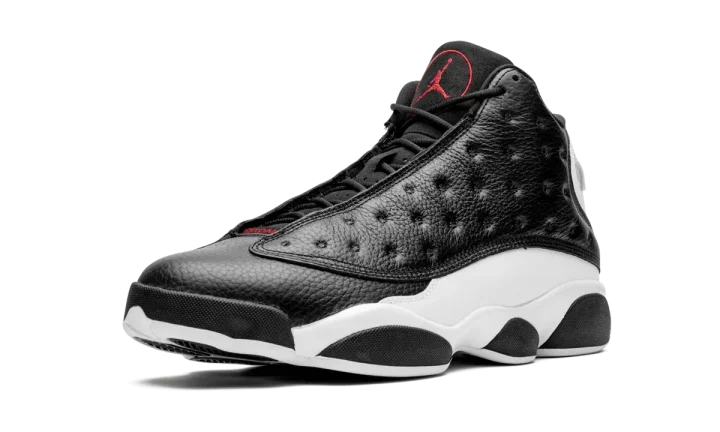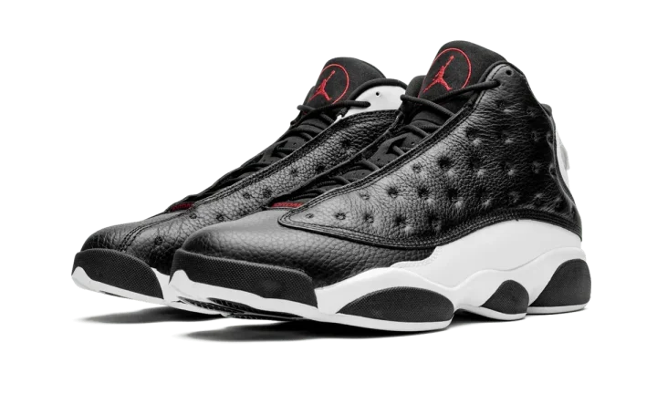 The Air Jordan 13 "Reverse He Got Game" is one Jordan Brand's first releases of 2020 and features an inverted take on a classic performance basketball design. Inspired by the late-90s hoops film starring Denzel Washington as "Jake Shuttlesworth" and Ray Allen as "Jesus Shuttlesworth," the latter of which wore the original white and black Air Jordan 13 colorway in the movie, the newly-minted "Reverse He Got Game" flips the color scheme for a fresh look. Plush textured and dotted leather adorns the shoe's upper while tonal smooth leather encompasses the toe. Red Jordan branding appears on the throat of the shoe with an embroidered Jumpman motif located on the tongue. White midsole walls contrasts the shadowy upper. Jordan Brand incorporates the 13's classic holographic emblem near the design's collar. Release date: January 11, 2020.