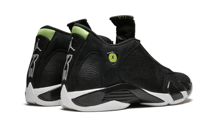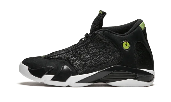 The fan-favorite Air Jordan 14 "Indiglo" finally made its first-ever comeback in 2016. Replicating the original 1999 release almost perfectly, the shoe features a full-grain leather and nubuck upper in black with eye-catching Indiglo green accents. No appreciator of the Air Jordan 14 should be without a pair.