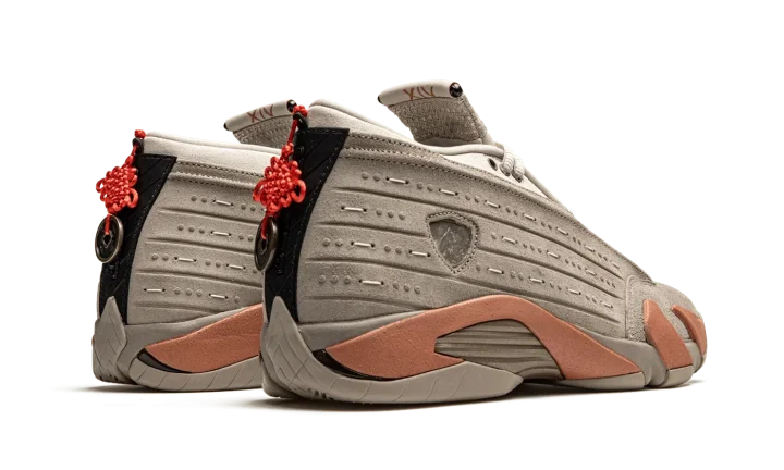 The Clot x Air Jordan 14 Low "Terracotta" is a February 2021 collaboration between Edison Chen's streetwear label and Jordan Brand on Michael Jordan's fourteenth signature shoe. Inspired by the massive reddish clay sculpted figures used in the burial of China's first emperor in 210 B.C., the "Terracotta'' progresses Chen's desire of bridging the gap between Eastern and Western cultures through sneakers. An earthy beige suede overlay can be found on the toe. The rest of the upper is constructed from a slightly lighter shade of matted beige suede for an "ancient" look. "Clot" and "Jordan" branding appear on the top of the left and right tongue, respectively. A metal medallion on the heel symbolizes a warrior on the basketball court. Clot finishes off the look of its "Terracotta" Air Jordan 14 collaboration by adding "clay" inspired detailing to the midsole that gives the shoe a "hardened" look. Release date: February 11, 2021.