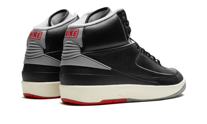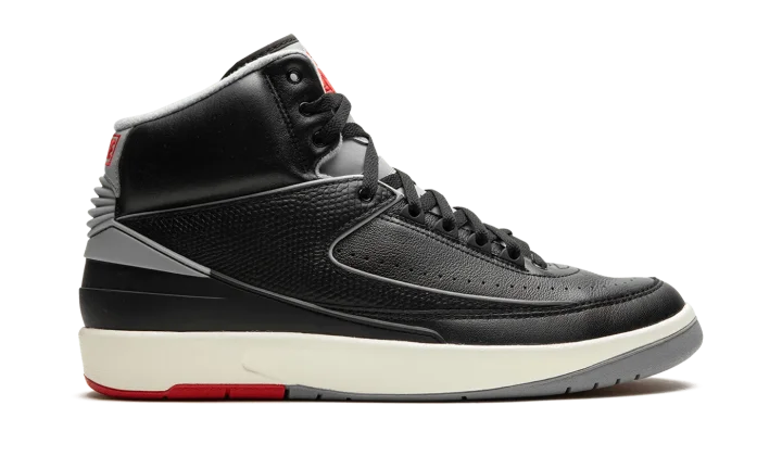 The Air Jordan 2 "Black/Cement" is a colorway of Michael Jordan's second signature shoe inspired by a legendary Air Jordan style. The shoe we're referring to is the Air Jordan 3 "Black Cement," one of the most iconic sneakers of all time. The "Black Cement" Jordan 2 mimics the Jordan 3 of the same nickname's look with black, grey, and red detailing. More specifically, the shoe has a black leather construction with contrasting Cement Grey accents on the heel, tongue, and inner lining. A red "Wings" logo appears on the tongue. Underfoot, the white midsole is paired with a red and grey rubber outsole. Release date: September 23, 2023