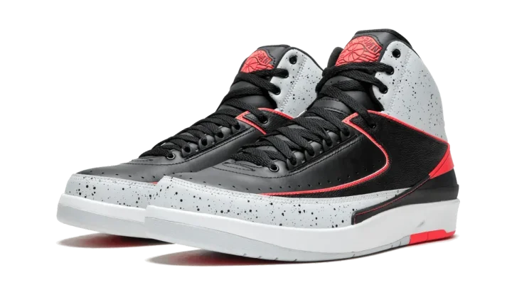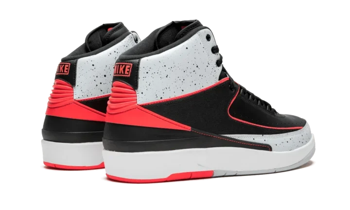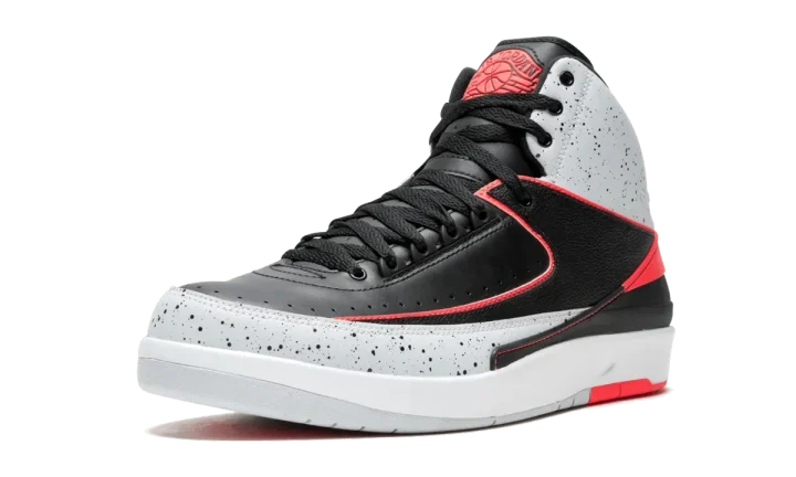 The Air Jordan 2 gets its boldest makeover ever with this "Infrared" release. Transforming the look of the classic silhouette, the shoe sports a unique color block in black, grey speckled, and vibrant Infrared paneling.