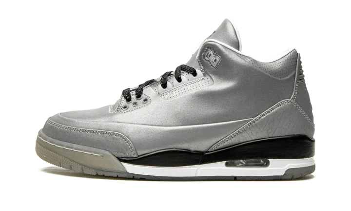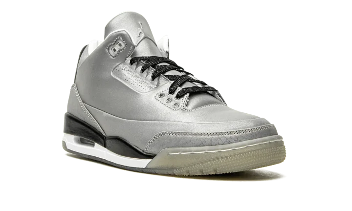 Combining the silhouette of the Air Jordan 3 with a signature material of the Air Jordan 5, the Air Jordan 5Lab3 is birthed. Taking the iconic reflective tongue of the Air Jordan 5, the Air Jordan 3 is covered completely in the reflective metallic silver material. A limited 2014 release.