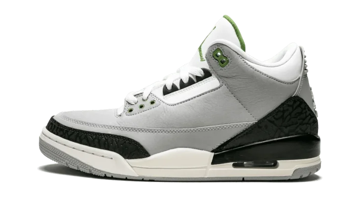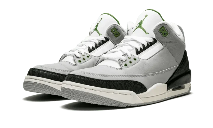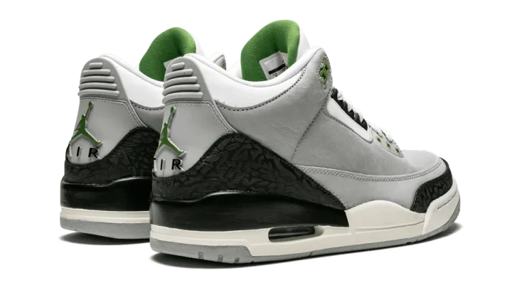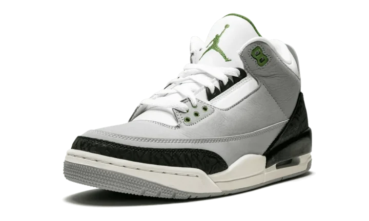 The Air Jordan 3 "Chlorophyll" is a special edition of the third Air Jordan that pays tribute to another Nike sneaker that was also designed by Tinker Hatfield. The light grey, white, black, and green color scheme is a reference to the original Air Trainer 1, the cross-training model that ushered in a whole new category of footwear after it debuted in 1987 — one year before Hatfield's Air Jordan 3 was released. The Air Jordan 3 "Chlorophyll" is part of a "Tinker Hatfield" pack of Air Jordan retros that released in 2018 featuring recognizable colorways of other landmark models designed by Hatfield in the late 1980s and early '90s.
