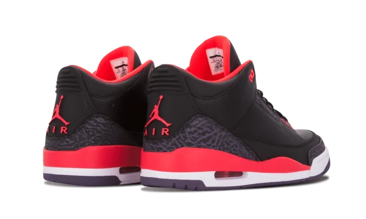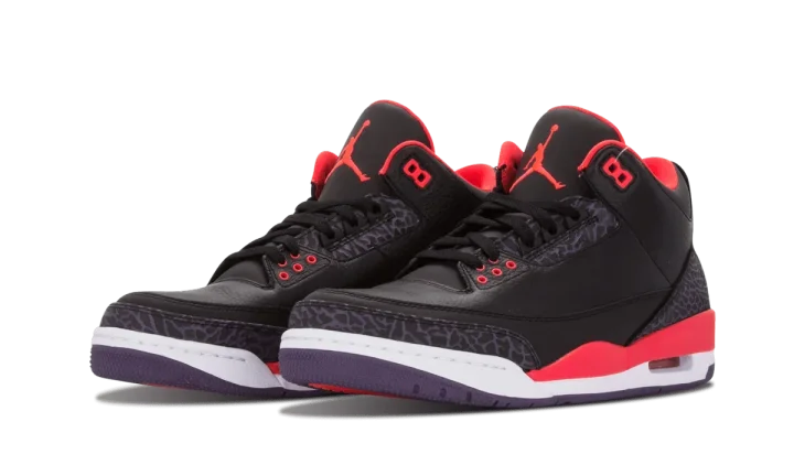 An all new colorway released in 2013, this Air Jordan 3 features a bold look in black leather with eye-popping Bright Crimson and Canyon Purple accents. A bit slept on when it originally dropped, the colorway is now sought out by many that missed out.
