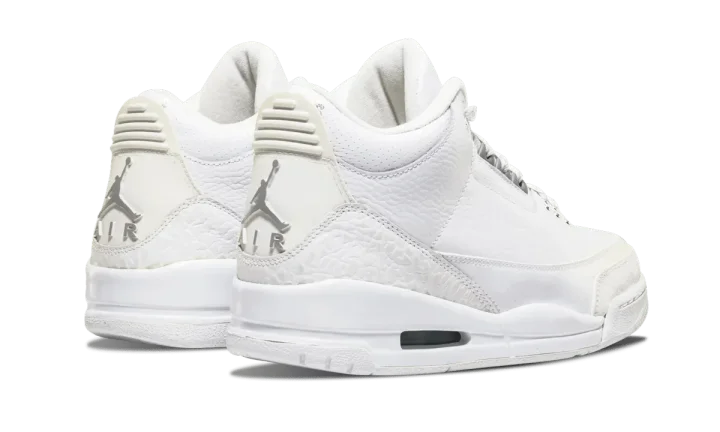 This "Pure Money" colorway of the Air Jordan 3 from 2007 features the silhouette's most pristine look ever in all-white leather with metallic silver accents.