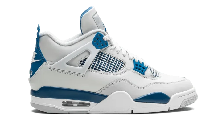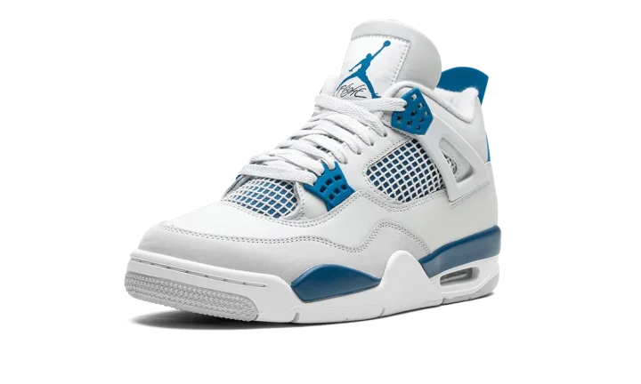 The Air Jordan 4 OG "Military Blue" is an original colorway of Michael Jordan's fourth signature shoe that was re-released by Jordan Brand in May 2024. The Jordan 4 "Military Blue" is one of the retro basketball sneaker's original colorways, and one of its rarest, too. The style was only released twice before, in 1989 and 2006, until it was brought back in 2024. The modern version of the "Military Blue" remains faithful to the original look, in that it features the same shape, color block, and "Nike Air" branding as the '89 version. The shoe has a white leather upper with a Neutral Grey overlay on the toe. Additional Neutral Grey accenting appears on the lace holder "wings." White netting is layered over Military Blue mesh on the mid-panel and tongue. More Military Blue accenting comes into play on the mudguard and lace eyelets, and on the heel counter with "Nike Air" detailing. A blue Jumpman is found on the tongue. Underfoot, a white rubber midsole and grey rubber outsole complete the look. Release date: May 4, 2024