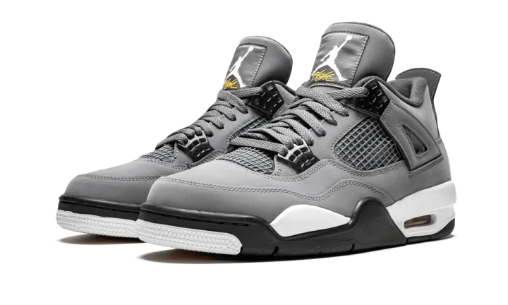 The Air Jordan 4 "Cool Grey" is the 2019 retro of the classic colorway. Originally released in 2004 as one of the first non-original colorways of the iconic Air Jordan 4, the "Cool Grey" edition became a rare and coveted sneaker throughout the years. Jordan collectors welcomed it back in 2019 with open arms. This 2019 version features the exact same look as the original release, constructed with a grey nubuck upper with black accents and a white midsole. Hits of yellow are found on the "Flight" logo on the tongue, the "Air Jordan" patch on the inside of the tongue, the visible Air unit, and outsole accents. Chrome Jumpman logos on each heel complete the classic look. The Air Jordan 4 "Cool Grey" released on August 1, 2019.