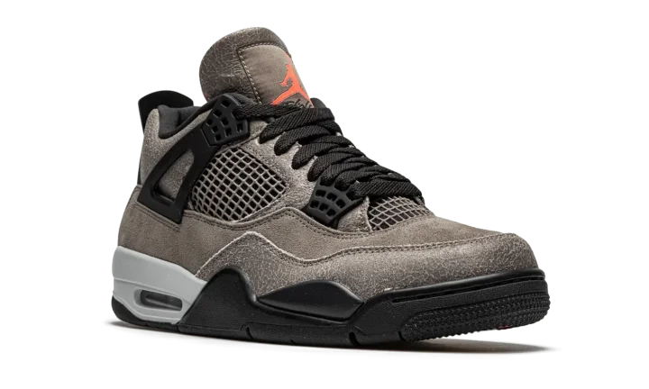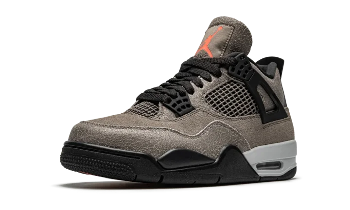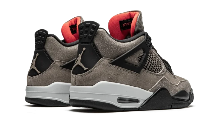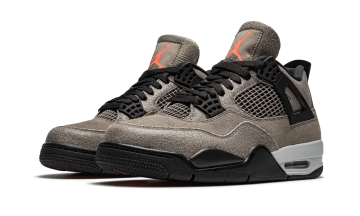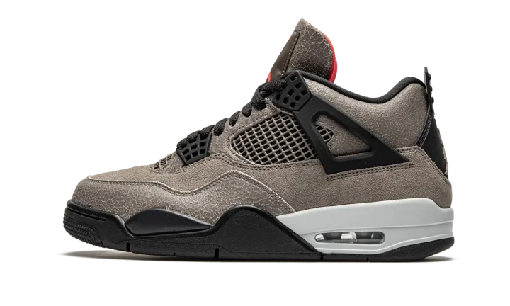 The Air Jordan 4 "Taupe Haze" is a lifestyle colorway of Michael Jordan's fourth signature shoe that was released by Jordan Brand in January 2021. The "Taupe Haze" is highlighted by its neutral based, earth tone color palette. Black plastic "Wings" eyestay holders match the tonal shoelaces and mesh detailing on the tongue and mid-panel. Jordan Brand places a taupe Jumpman logo on the back of the shoe and a blazing red Jumpman on the branding tag stitched onto the tongue. The same bright shade of red appears on the underside of the tongue and on the Jumpman-branded insole. A visible Air unit can be found in the heel of the Air Jordan 4 "Taupe Haze" to finish off the look. Release date: February 27, 2021