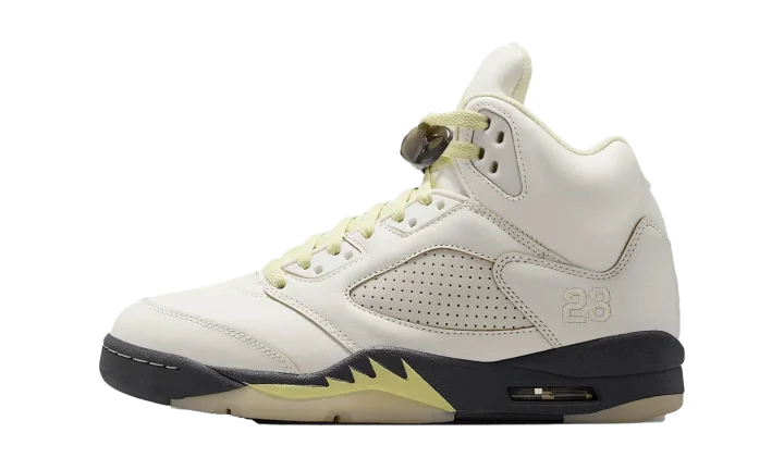 Illuminate your look with the vibrant women's Air Jordan 5 "Luminous Green." The clean Sail upper provides a perfect backdrop for the striking Luminous Green accents on the shark teeth, Jumpman logos, and lace lock. This bold colorway, combined with the AJ5's distinctive design elements, creates a head-turning and stylish sneaker statement.