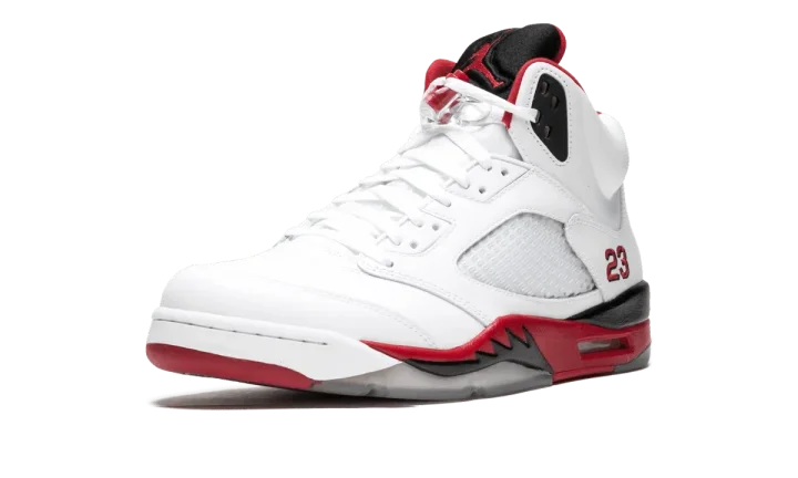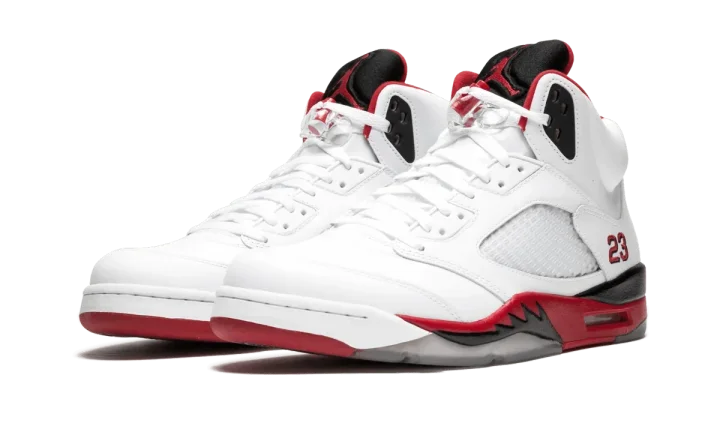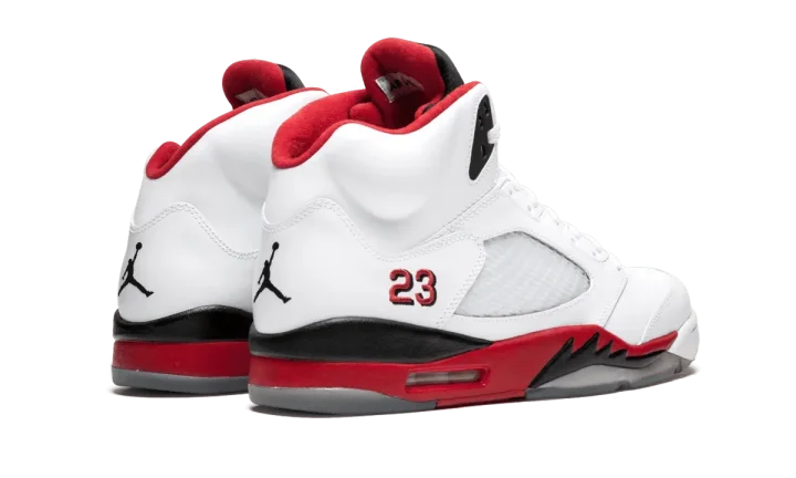One of Michael Jordan's classic on-court colorways from 1990, this is the "black tongue" Fire Red Air Jordan 5 Retro. This is the 2013 edition of the iconic colorway.