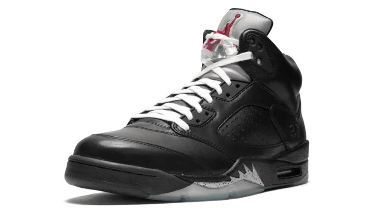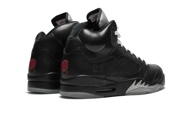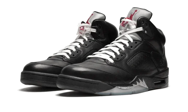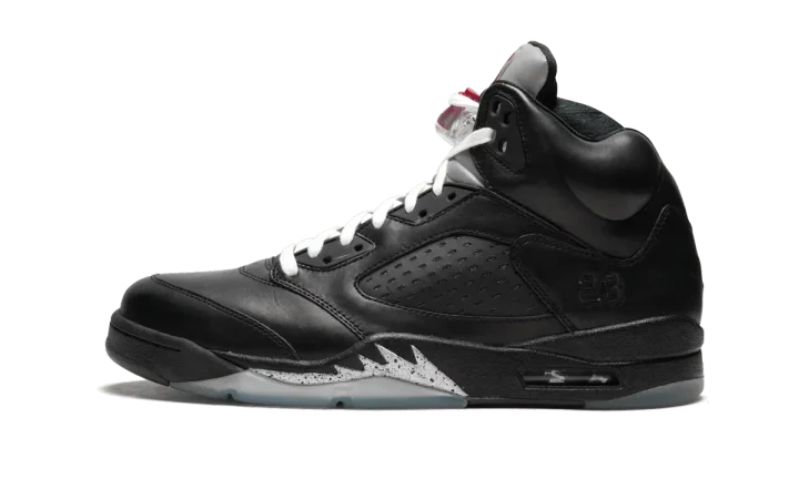 Very limited and constructed with impeccable quality, this is the Air Jordan 5 from the BIN 23 series of premium Air Jordans. Similar to the original "Black/Metallic" colorway, the shoe features a soft black leather upper metallic silver accents and white laces.