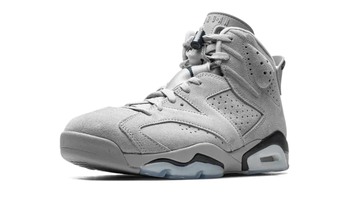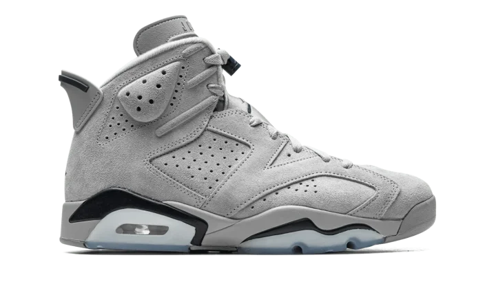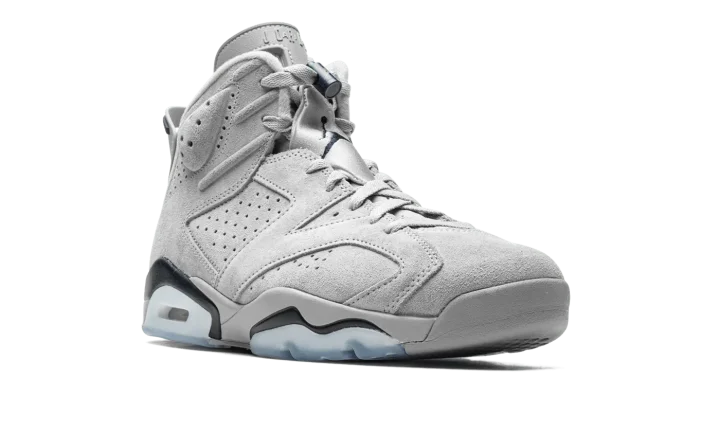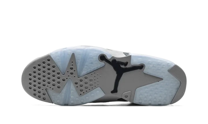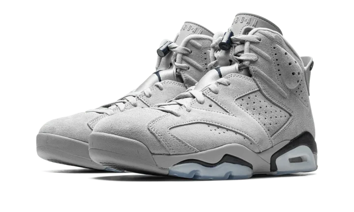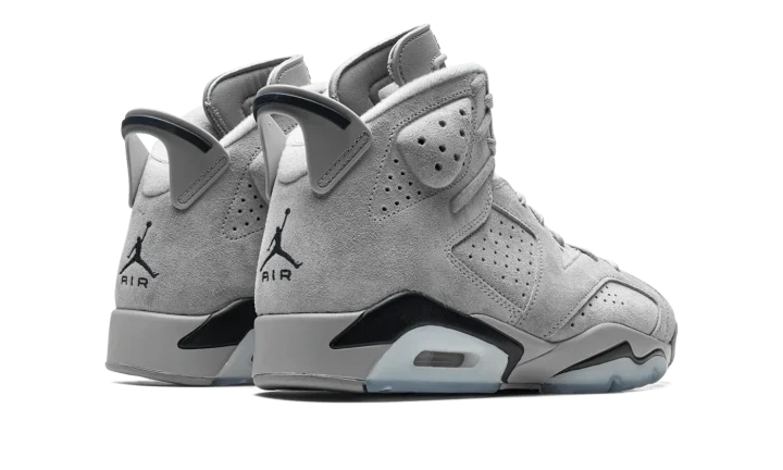 The Air Jordan 6 "Georgetown" is a clean colorway of Michael Jordan's sixth signature shoe inspired by the Georgetown Hoyas team uniforms. Although Jordan and the UNC Tar Heels defeated the Hoyas to win the NCAA Men's College Basketball Championship in 1982, that hasn't stopped Jordan Brand from using the popular basketball team's uniform colors on several great Jordan shoes, including this Jordan 6. The upper features a grey suede construction with contrasting Midnight Navy accenting on the heel "spoiler," lace toggle, and on the Jumpman on the back of the shoe. Additional navy detailing appears on the painted mudguard above the semi-translucent panel on the forefoot and heel of the midsole. Release date: September 3, 2022