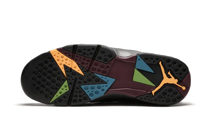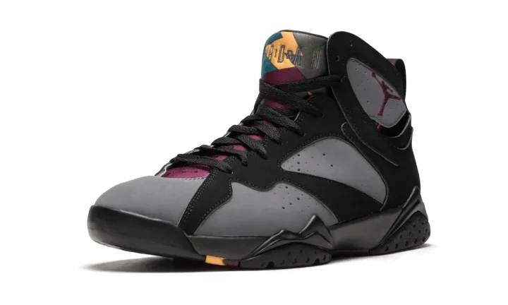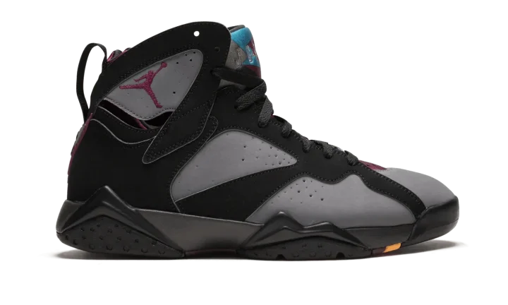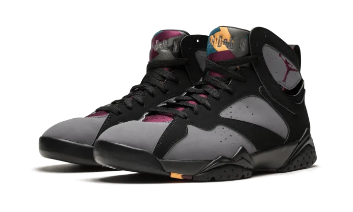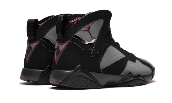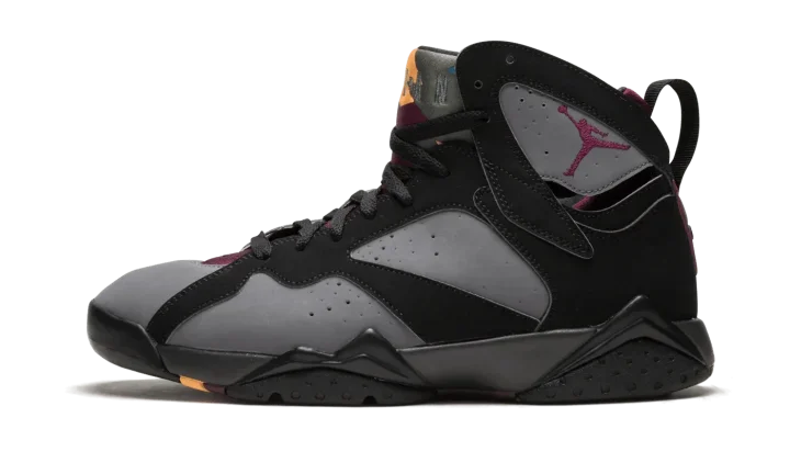 An original colorway of the Air Jordan 7 from 1992, the "Bordeaux" version features contrasting grey and black paneling with prominent wine red accents. The colorway was worn on court by Michael Jordan once, for the the 1992 NBA All Star Game, and can also be spotted on Michael's feet in the classic Michael Jackson "Slam" music video.