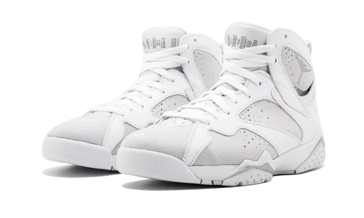 We see the "Pure Money" motif return on an Air Jordan sneaker for the third time in 2017. This edition of the Air Jordan 7 Retro gets dressed up in the clean White and Metallic Silver look. The upper features a combination of a premium leather overlay and buttery smooth suede paneling. Hits of metallic silver appear on the tongue, midsole, and ankle. The finished product is perhaps the cleanest version of the Air Jordan 7 to date. Not to mention that it arrives just in time for spring/summer '17.