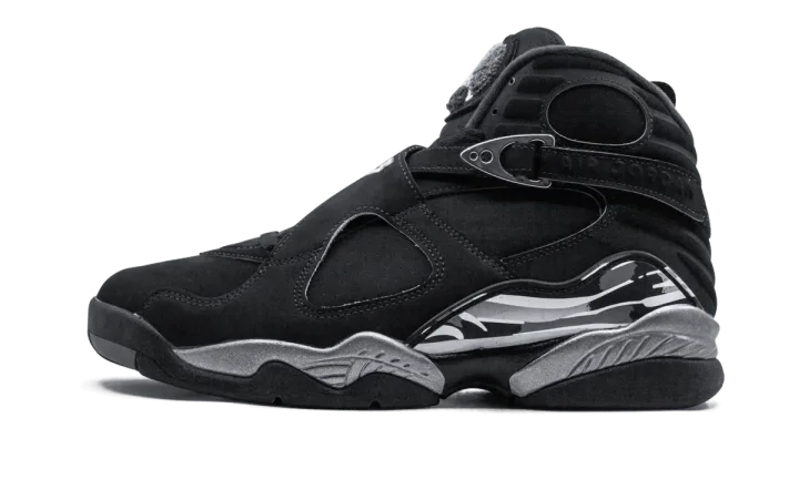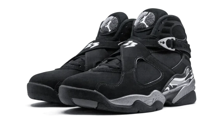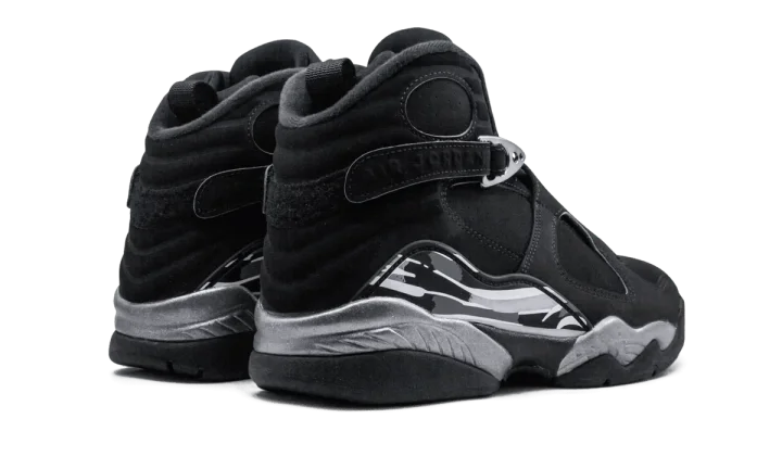 Originally released in 2003 as the first-ever non-original colorway of the Air Jordan 8, the "Chrome" look was back again in 2015 for a second round. The colorway features a predominantly black upper with Light Graphite and chrome accents for a clean and tough look to the iconic silhouette.