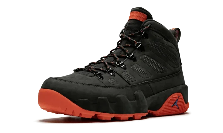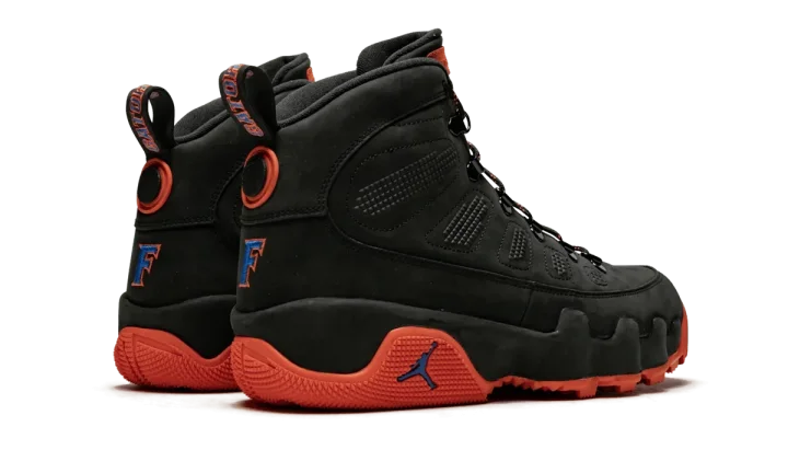 Black and orange Air Jordan 9 Boot University of Florida PE from jordan featuring a round toe, a lace fastening and a ridged rubber sole. Supplied by a premier sneaker marketplace dealing with unworn, already sold out, in demand rarities. Each product is rigorously inspected by experienced experts guaranteeing authenticity.