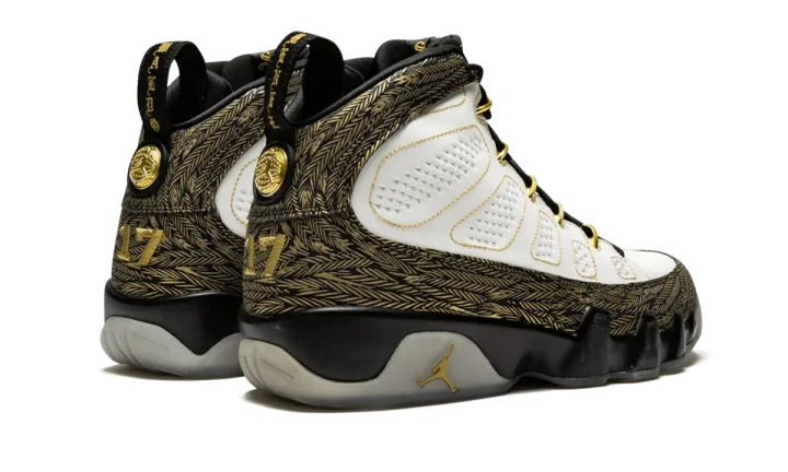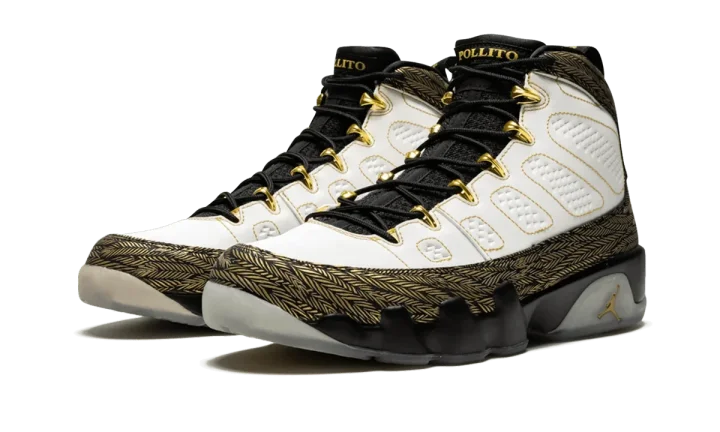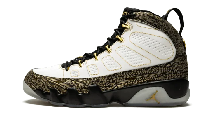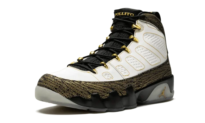 Part of the 2012 Nike x Doernbecher Freestyle Collection, this Air Jordan 9 designed by Oswaldo Jimenez features a clean black and white upper with golden feathers inspired by his nickname "little chicken". Considered by most to be one of the best Air Jordan Doernbecher colorways, these are now a highly sought after edition of MIchael's ninth signature shoe.