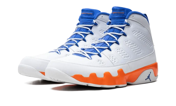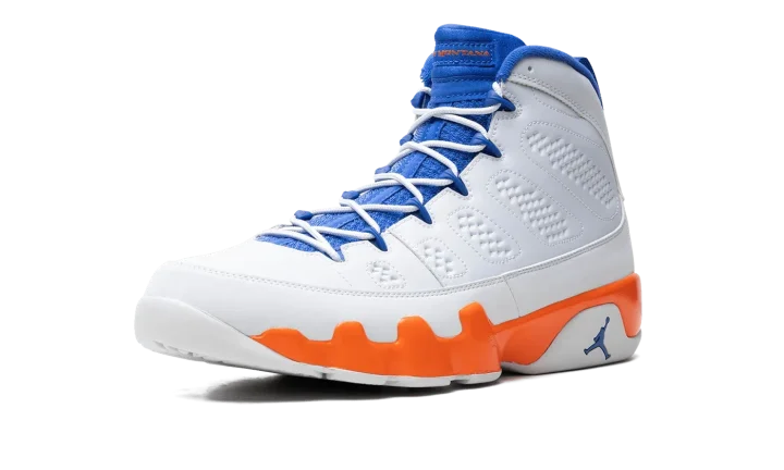 Nike had some fun with Jordan's retirement in 1994, creating the "Johnny Kilroy" ad campaign that suggested he hadn't retired from the game after all. In 2012 Jordan Brand created a retro Air Jordan 9 pack referencing each of the suspicious characters from the commercial series, including this Fontay Montana colorway in white, royal blue, and orange. These also double nicely as a "Knicks" colorway.