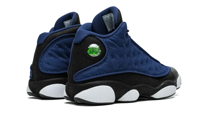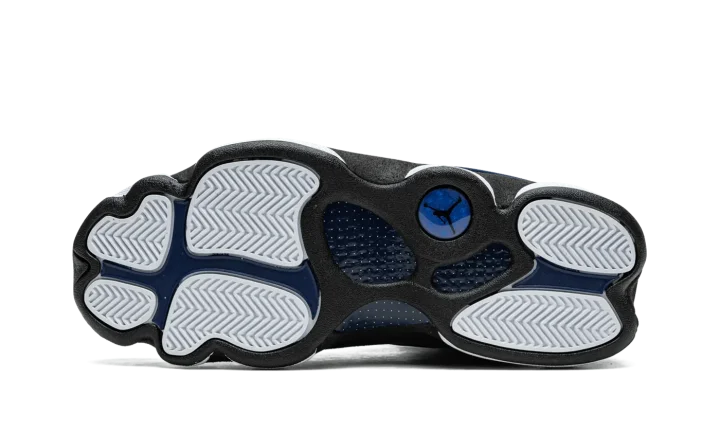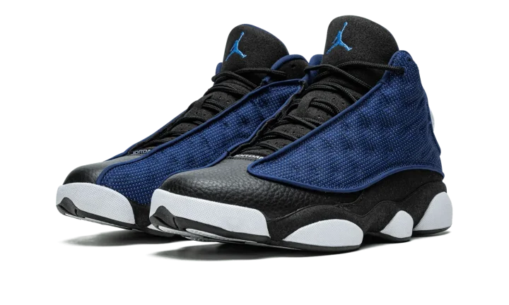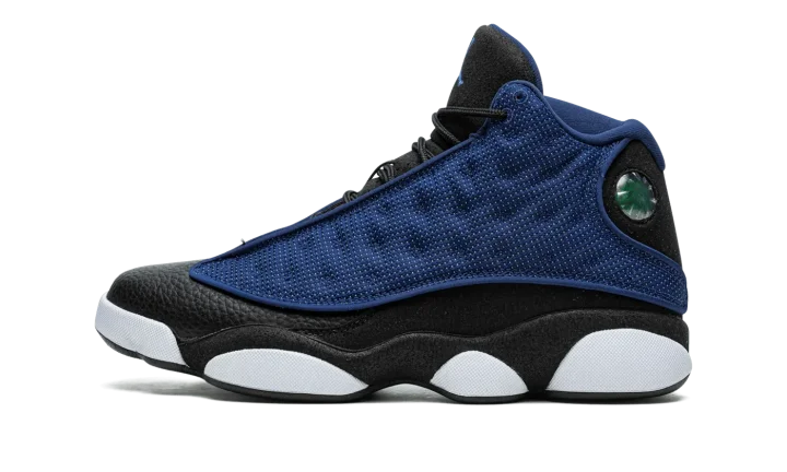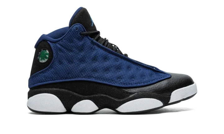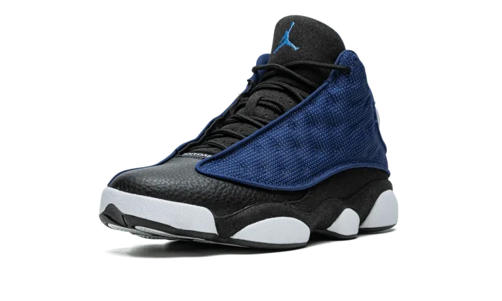 The Air Jordan 13 "Brave Blue" is the alternate high-top version of an original colorway of Michael Jordan's thirteenth signature shoe from 1998. The Jordan 13 Low "Brave Blue" was released in '98. Jordan Brand re-issued the Jordan 13 Low "Brave Blue" in 2017 before releasing this high-top iteration in April 2022. The modern "Brave Blue" looks exactly the same as the original low-top version, albeit in high-top form. It features a reflective Brave Blue mesh upper with a black synthetic nubuck mudguard. Black leather is found on the toe. A holographic emblem appears on the collar and a "Jordan" tag is located on the vamp. Underfoot, white pods appear above a black rubber sole. Release date: April 29, 2022