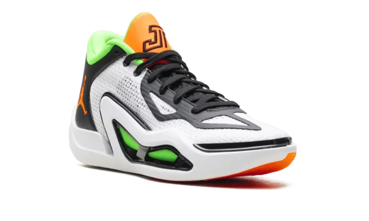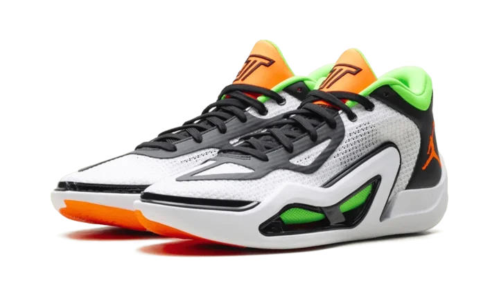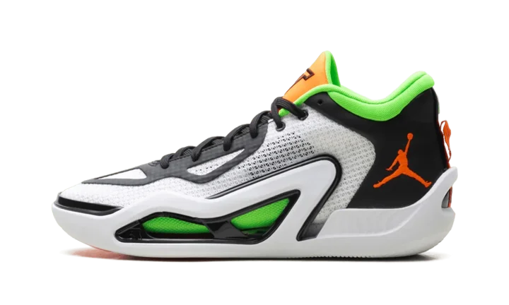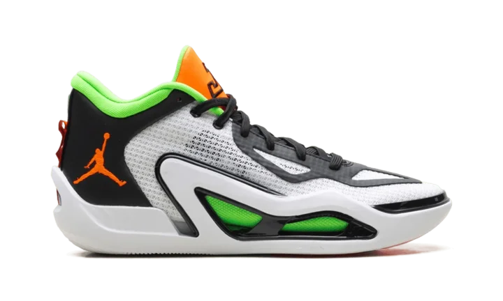 Feel the championship energy in the Air Jordan Tatum 1 "Home Team" basketball shoe! Designed for Jayson Tatum's dynamic game, this ultra-lightweight sneaker delivers speed and agility for future hoopers. It features a reinforced mesh upper for breathability and a responsive foam midsole for explosive takeoffs and soft landings. The durable rubber outsole provides unstoppable traction for quick cuts. With its vibrant White, Black, Green Strike, and Total Orange colorway, it's perfect for men ready to dominate the court.