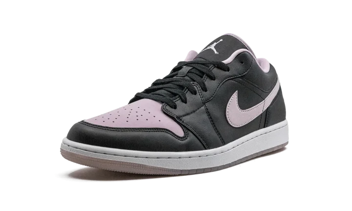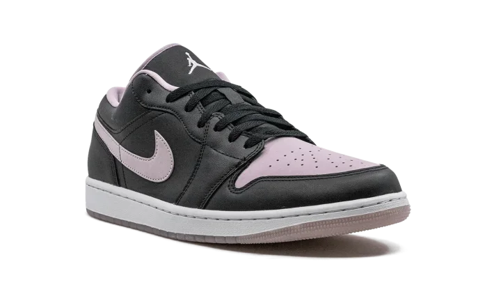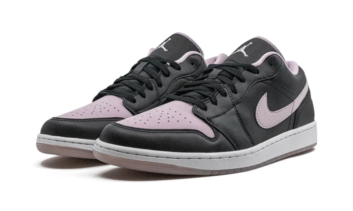 The Air Jordan 1 Low "Black/Iced Lilac" is a colorway of the low-top retro basketball shoe with a two-tone color block. More specifically, the "Black/Iced Lilac" features an Iced Lilac perforated leather toe box and leather Swoosh against a black leather upper. The eye-pleasing lilac hue is also found on the "Wings" branding embroidered on the heel, on the Jumpman on the tongue, and on the inner lining. A white rubber midsole and Iced Lilac rubber outsole complete the look.