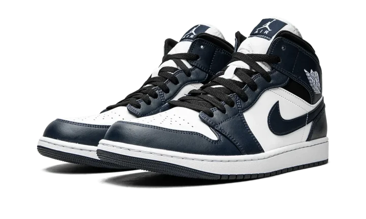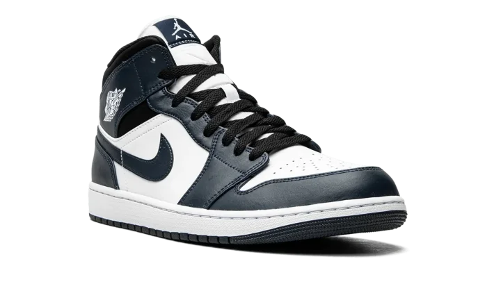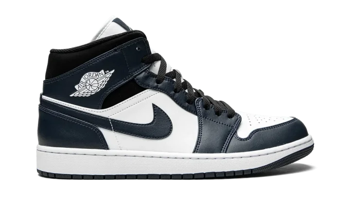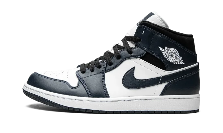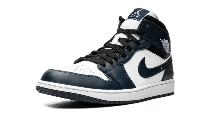 Jordan Brand gives the Air Jordan 1 Mid a classic update with this "Armory Navy" colorway. The Air Jordan 1 Mid is made with full-grain leather and has a perforated toe box for a durable and breathable fit. Navy blue, white, and black colors take turns covering elements of the upper, while the midsole keeps things together in white and the shoe ends in a navy blue outsole.