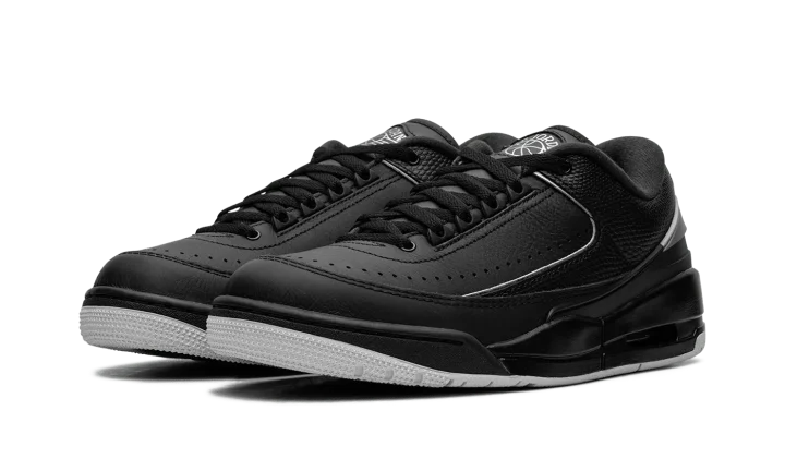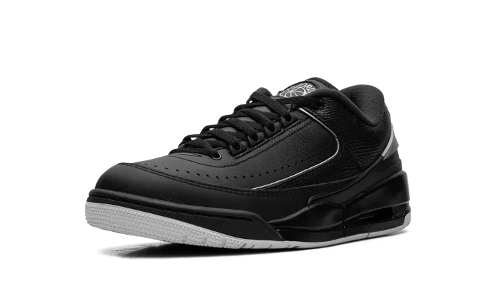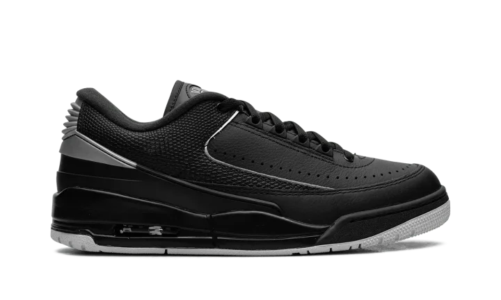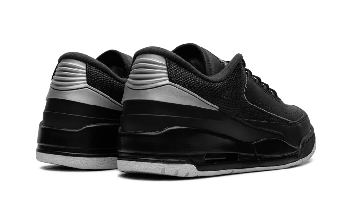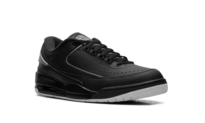 Walk in cool sophistication with the Jordan 2/3 'Black/Metallic Silver' sneaker. This hybrid silhouette masterfully fuses the finest features of two legends: the sleek leather upper of the Air Jordan 2, complete with reptile-textured accents, and the iconic sole of the Air Jordan 3. The black base is elegantly contrasted with shining Metallic Silver accents and responsive Nike Air cushioning in the heel. This shoe is built with premium materials for durability, exuding luxurious street style that honors Jordan's rich heritage.