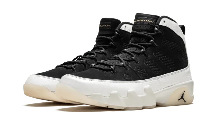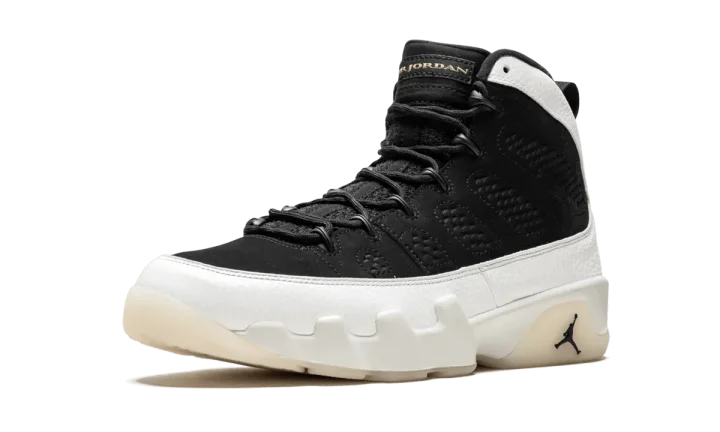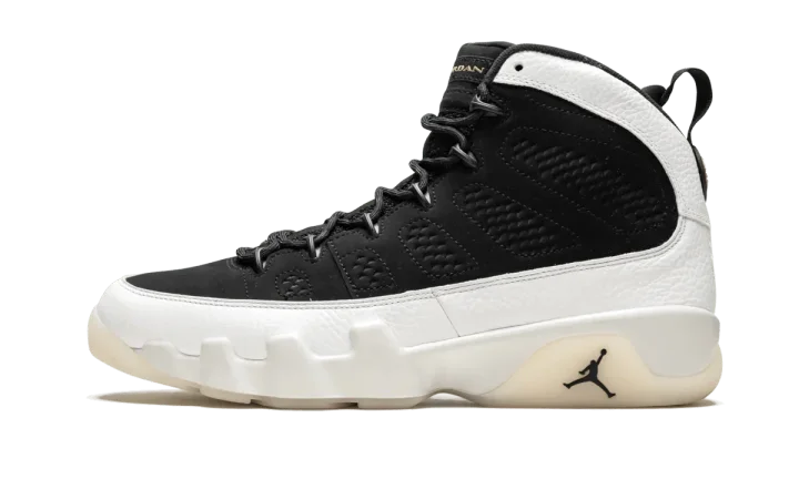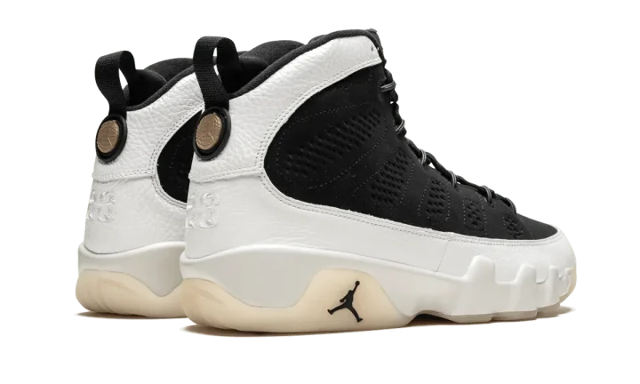 The Air Jordan 9 joined the celebration for the 2018 NBA All-Star Game in Los Angeles, dropping in this special edition colorway with one of the cleanest looks ever for the silhouette. The "LA" Air Jordan 9 features a high contrast color block in black nubuck and white leather that's almost a reverse of the OG white and black colorway. Special details include a milky translucent outsole, touches of gold detailing, and insoles with a graphic map of Los Angeles to complete the impressive look. If you're already a fan of the Air Jordan 9, take one look at these and you should be in love.