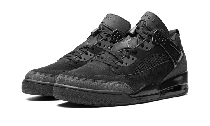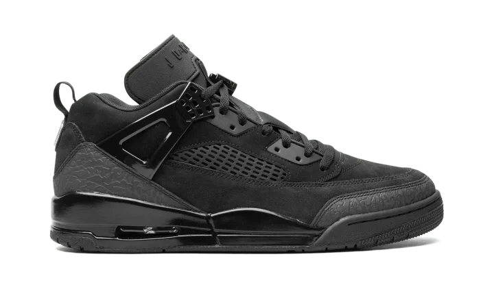 Embrace stealthy street style with the Jordan Spizike Low "Black Cat." This fusion sneaker is a tribute to Michael Jordan's nickname, blending iconic design cues from the Air Jordan 3, 4, 5, and 6 into a sleek low-top. It features a sophisticated all-black monochrome look across the nubuck upper, with tonal suede and classic elephant print overlays. Visible Air-Sole cushioning and a monochromatic outsole reinforce its heritage, making it a powerful, dark addition to any collection.