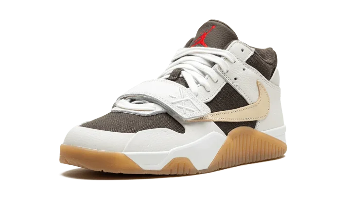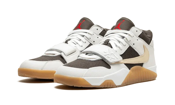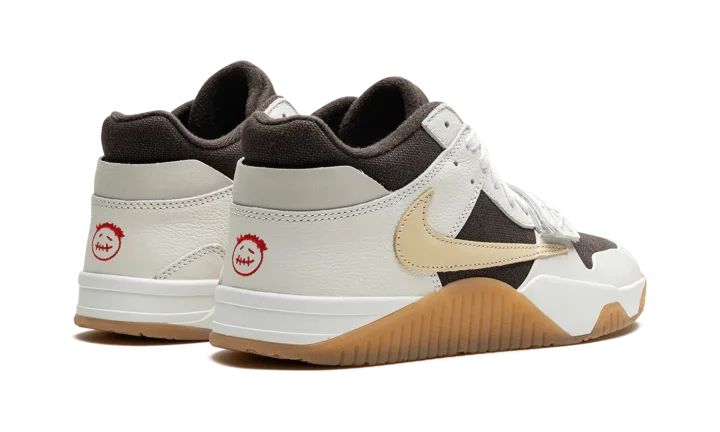 The Travis Scott x Jordan Jumpman Jack "Cut the Check" is the hip-hop star's debut signature shoe with Jordan Brand. After high-profile collaborations with Nike and Jordan Brand, Travis Scott released his first signature shoe, the Jordan Jumpman Jack, with Jordan Brand in 2024. The sneaker features details from Scott's previous collaborations, like a backwards Swoosh and smiley face logos. The upper has a Muslin textile base, Sail leather overlays, and a backwards Swoosh on the lateral side. A standard leather Swoosh can be found on the medial side, while a Sail leather midfoot strap provides a lockdown fit. Scott's signature smiley face logo is embroidered in red on the heel. A gum rubber outsole completes the look. Release date: April 30, 2024