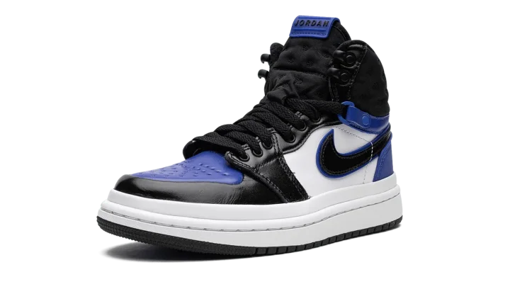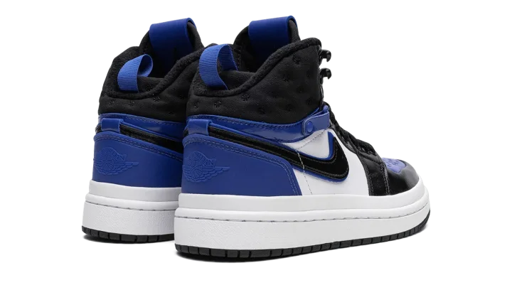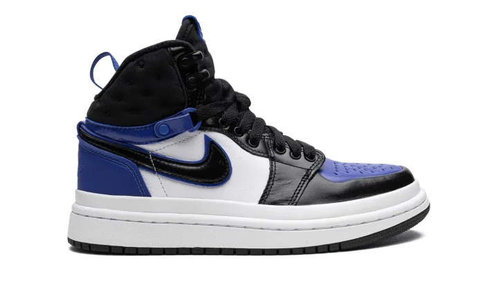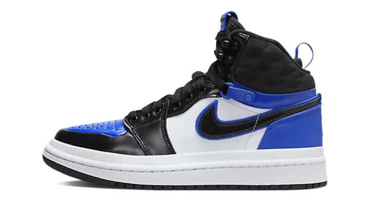 The Women's Air Jordan 1 Acclimate "Royal Toe" is a women's-exclusive colorway of the weather-resistant version of Michael Jordan's first signature shoe. The Jordan 1 Acclimate retains the sneaker's original high-top silhouette, but modifies its design with elements to withstand harsh weather conditions. Royal perforated leather is found on the toe while black leather appears on the toe cap, forefoot, and eyelets. A black leather Swoosh is found on the sides. A boot-like lacing setup and a dotted black textile collar give the shoe a decidedly rugged appearance. The shoe rides on a white rubber midsole with extra-tall foxing for improved water resistance.