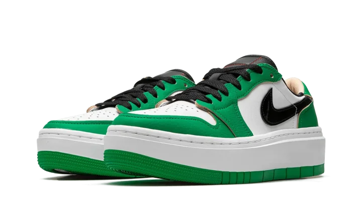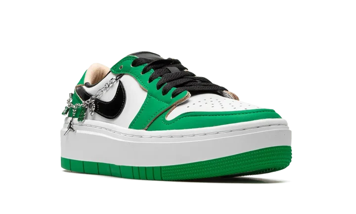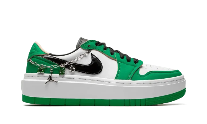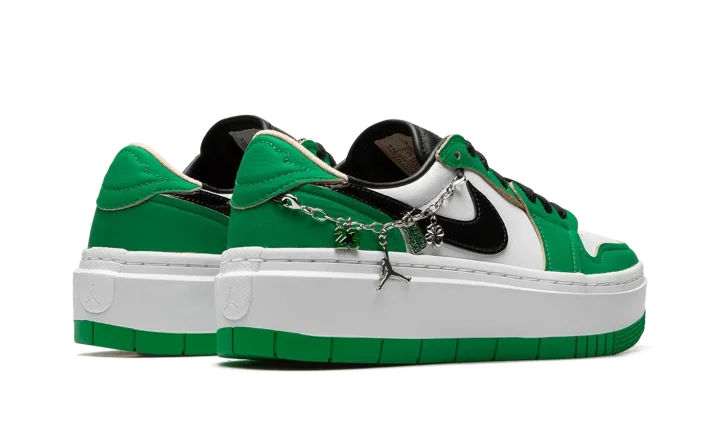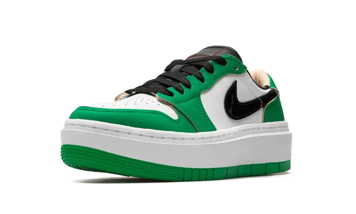 The Women's Air Jordan 1 Elevate Low "Lucky Green" is a women's-exclusive version of the popular retro basketball shoe that updates its classic design with a platform-style sole. The Jordan 1 Elevate Low puts a contemporary twist on the Jordan 1 Low with an oversized, white rubber sole that adds significant height to the wearer. In spite of its modernized style, the rest of the shoe remains somewhat consistent with the Jordan 1 Low OG model. The "Lucky Green" colorway features a white leather base with contrasting Lucky Green leather overlays and black leather Swoosh branding. A bubble-style "Wings" logo appears on the heel. Release date: April 15, 2022