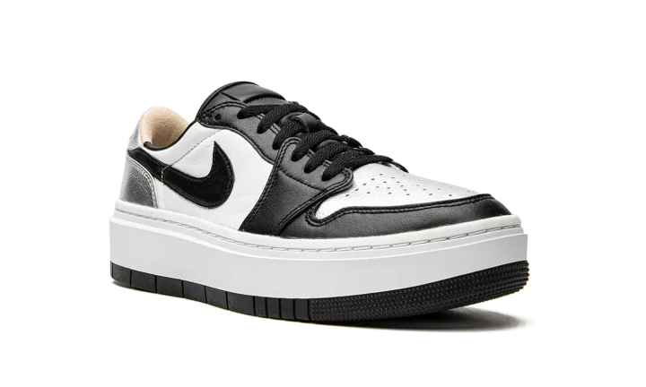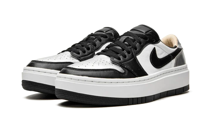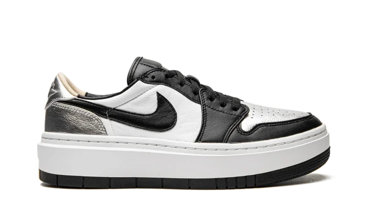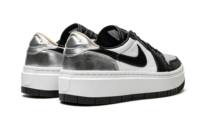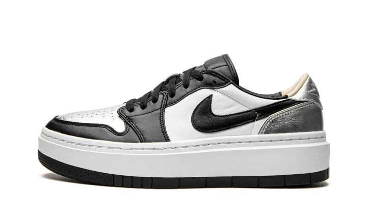 The Women's Air Jordan 1 Elevate Low "Silver Toe" is a women's-exclusive colorway of the retro basketball shoe with a modified, platform-style sole. The Jordan 1 Elevate Low updates the Jordan 1 Low with an oversized, white rubber midsole that adds significant height to the wearer while giving the shoe a modern look. The "Silver Toe" features a Metallic Silver leather perforated toe box with contrasting black leather on the toe cap, forefoot, and eyelets. A black leather Swoosh appears on the white leather mid-panel. More Metallic Silver leather is found on the heel. Release date: October 19, 2022