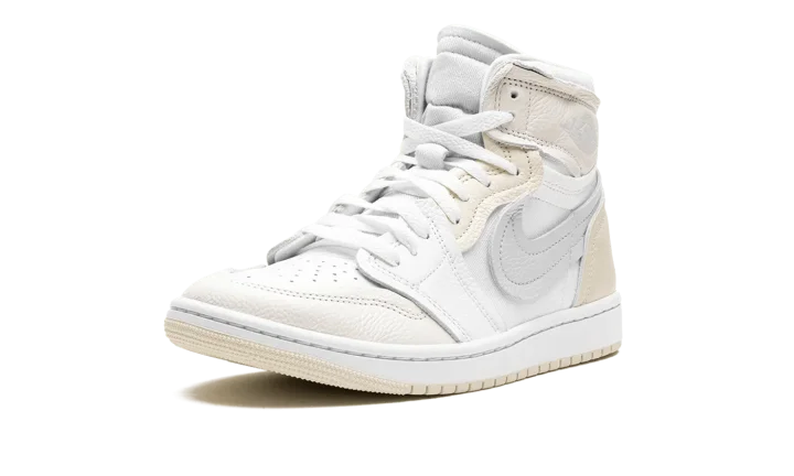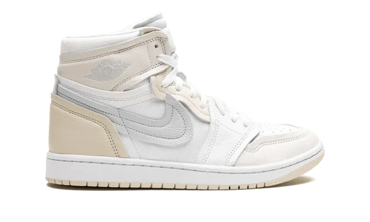 The Women's Air Jordan 1 High MM "Coconut Milk" is a women's-exclusive colorway of the alternate version of the classic high-top basketball sneaker. A modern take on Michael Jordan's first signature shoe, the Jordan 1 High MM has exaggerated panels throughout for a unique look. More specifically, the "Coconut Milk" has a white base with leather appearing on the perforated toe and canvas on the mid-panel. Coconut Milk leather overlays are on the toe cap, middle eyestay panel, and heel. Grey leather is seen on the forefoot overlay and collar, as well as on the oversized leather Swooshes on the sides. Classic "Wings" branding is located on the collar. The tongue is devoid of branding for a more contemporary look. Release date: October 4, 2023