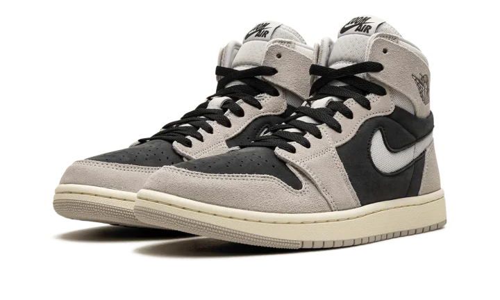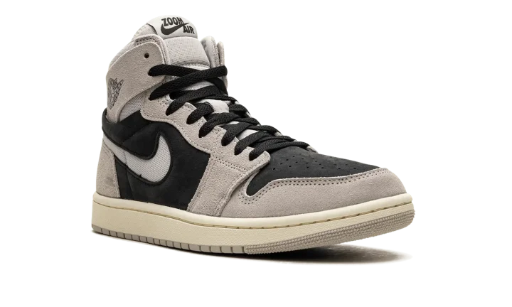 The Women's Air Jordan 1 High Zoom CMFT 2 "Light Iron Ore" is a women's exclusive colorway of the modified Jordan 1 with a versatile look. The Jordan 1 Zoom Comfort 2 is the second version of the Jordan 1 Zoom Comfort shoe that debuted as a lifestyle take on the classic silhouette with added comfort. The "Light Iron Ore" features a black suede base with Light Iron Ore suede overlays. A Coconut Milk cut-out Swoosh appears on the sides and a "Wings" logo is found on the collar. "Zoom Air" branding replaces the Jordan 1's original "Nike Air" detailing on the tongue tag. Underfoot, the Jordan 1 Zoom Comfort 2 features Nike's Zoom Air cushioning technology in the forefoot as well as additional foam. Release date: August 1, 2023