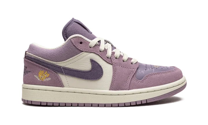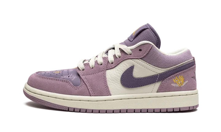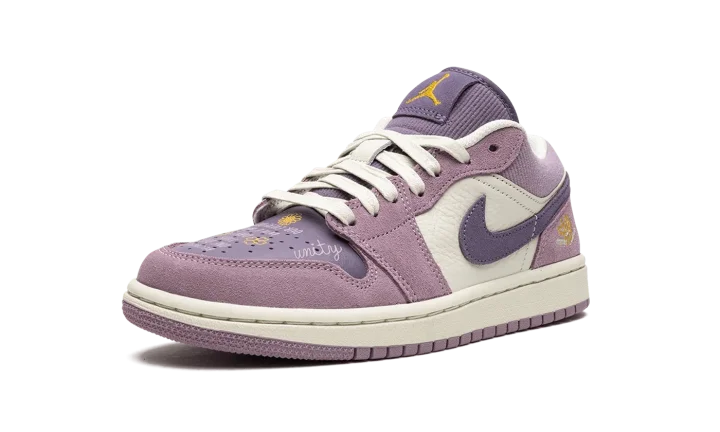 The Women's Air Jordan 1 Low "Unity" is a women's version of the popular lifestyle shoe that celebrates International Women's Day. Occurring annually on March 8th, International Women's Day is an event that raises awareness on the women's rights movement. Here, the "Unity" Jordan 1 Low honors the special holiday with inspirational details across its design. The shoe features a purple leather toe, white leather mid-panel, and contrasting purple suede overlays. A purple leather Swoosh appears on the sides. "Because One Day, This Day Will Be Our Everyday" is written on the toe box, as are "Unity" and "Equality" stamps. Images of flowers and a sun also appear on the toe. A Sail rubber midsole completes the look. Release date: March 6, 2023
