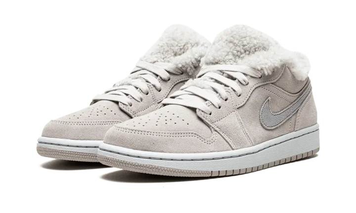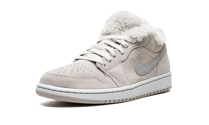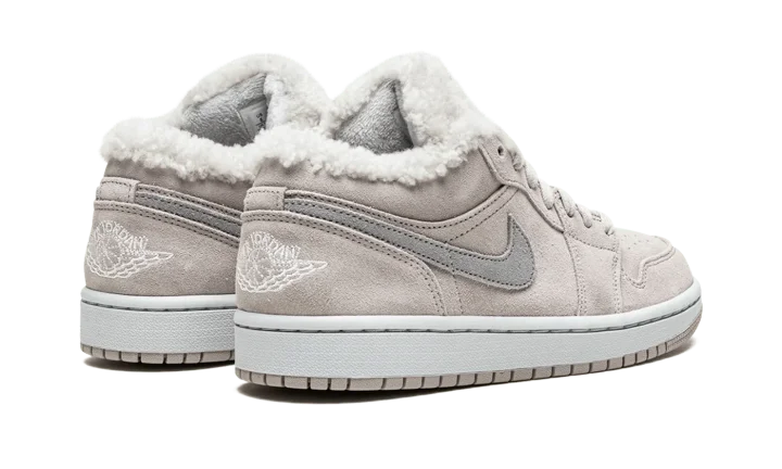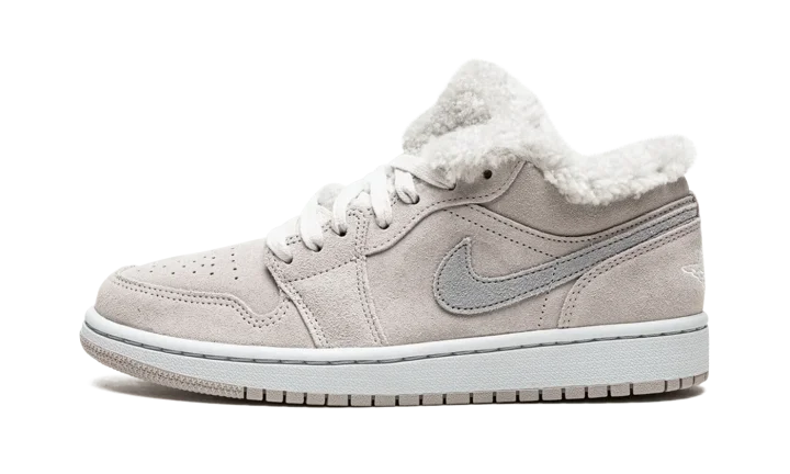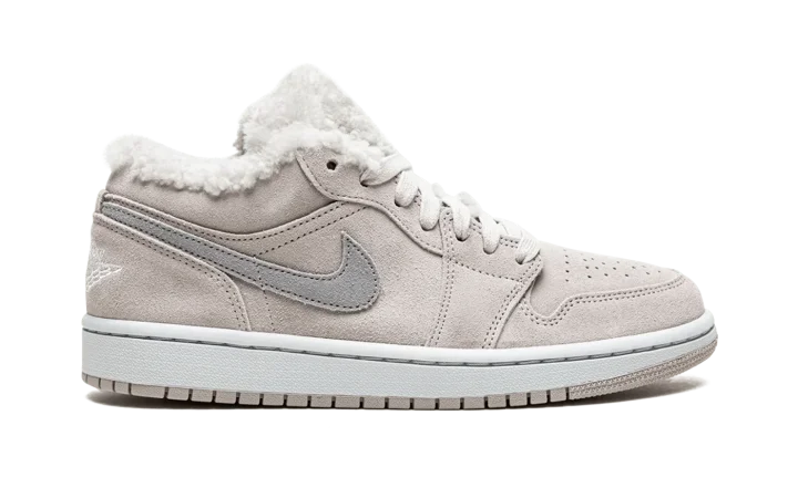 The Women's Air Jordan 1 Low SE "Sherpa Fleece" is a women's-only colorway of the popular lifestyle shoe with a cozy vibe that's ideal for cooler temperatures. The Jordan 1 Low "Sherpa Fleece" champions a decidedly off-court look with a white sherpa fleece-lined interior that wraps around the ankle collar and appears on the tongue. The upper is constructed of grey suede. A dark grey suede Swoosh is found on the sides and a white "Wings" logo is embroidered on the heel. The "Sherpa Fleece"Jordan 1 is a comfortable alternative to a pair of boots in more moderate temperatures. Release date: April 15, 2022